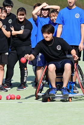 ボッチャ。障がいの有無に関係なくできることを体験します。