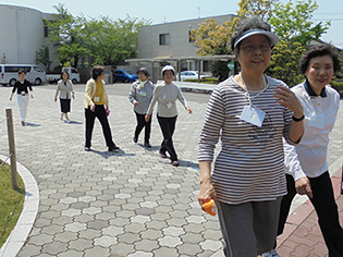 そして、いよいよウォーキングです。正しいウォーキングの仕方や注意点などを聞き、準備運動をしてから、大学の周りを歩きました。当日はとても良い天気で皆さん気持ちよさそうに歩いていました。これからも日常的にウォーキング、続けていけるようにがんばりましょう!