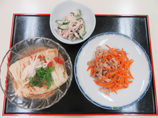 講義終了後、“蒸し暑さを食事で一掃!梅パワーで元気な毎日を”テーマに、有限会社フードオフィスダブリエより代表の後藤かをり先生を講師にお迎えし、メニューと調理手順の紹介していただきました。メニューは“万能梅ダレ”を用いた「いかときゅうりの梅わさ和え」「豚肉と人参の梅ナムル」「梅ごまぶっかけ素麺」の3品です。蒸し暑さを一掃できる梅干を使用したさっぱりとしたメニューです!