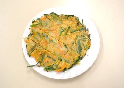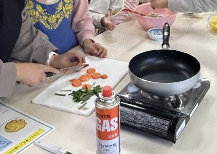 調理実習では、お子様が親御さんとサポートの学生の指導を受けながら真剣に調理に取り組んでいる姿が印象的でした。火加減を上手く調節し、チヂミを焦がすことなく、きれいに焼き上げることができました。
