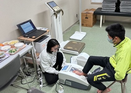 1月15日(水)、31日(金)、本学卒業生、管理栄養士の外谷夏輝先生とボランティア学生とともにRunup Academy所属の小中学生9名と保護者を対象に第4回スポーツ栄養サポート測定会を開催しました。測定会では、体組成や体力測定、個別栄養相談を実施しました。体組成の変化や練習量に合わせて食事内容を調節できる選手が増えてきたように感じます。冬は忘れがちな水分補給の行動計画を立てました。